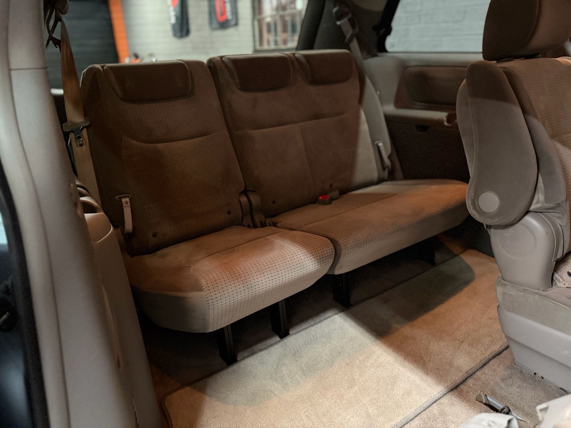 Third-row seatback upholstery: Carpet third-row seatback upholstery